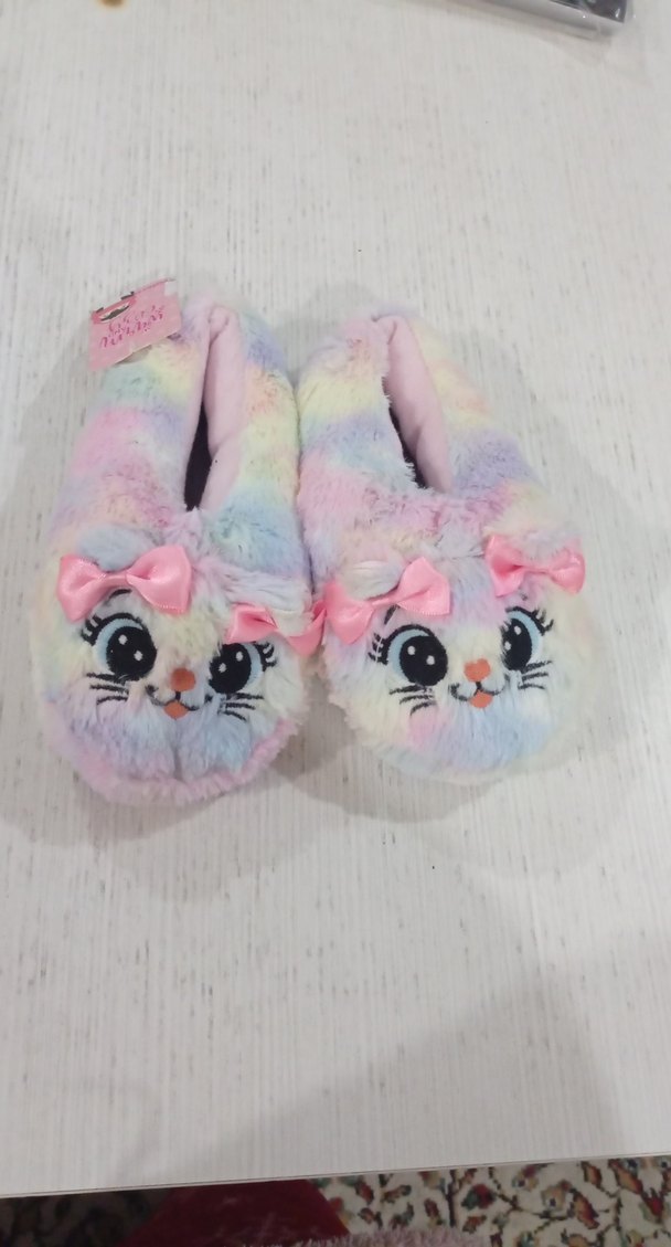 Kız çocukları için pastel tonlarda bağlama desenli, yumuşak kürk detaylı sıcak ev terliği, bohem ve retro tarzını yansıtıyor. 9/12 yaş