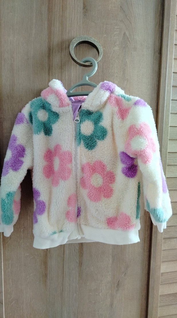 Kız Çocuk Peluş Kapüşonlu Çiçek Desenli Ceket