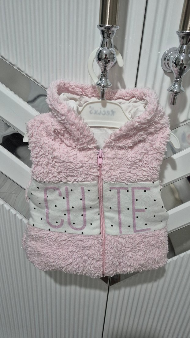 Kız Çocuk Peluş Kapüşonlu Yelek