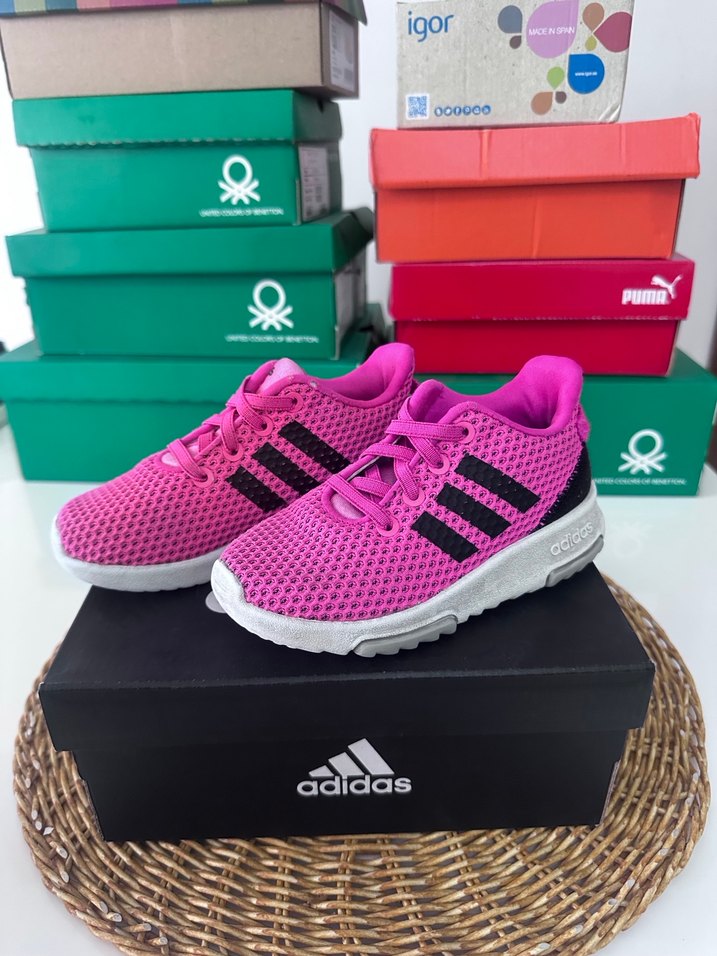 Nefes alabilen file üst yüzey ve bağcıklı pembe Adidas kız çocuk spor ayakkabısı. Rahat sokak stili için dayanıklı kauçuk tabanlı.