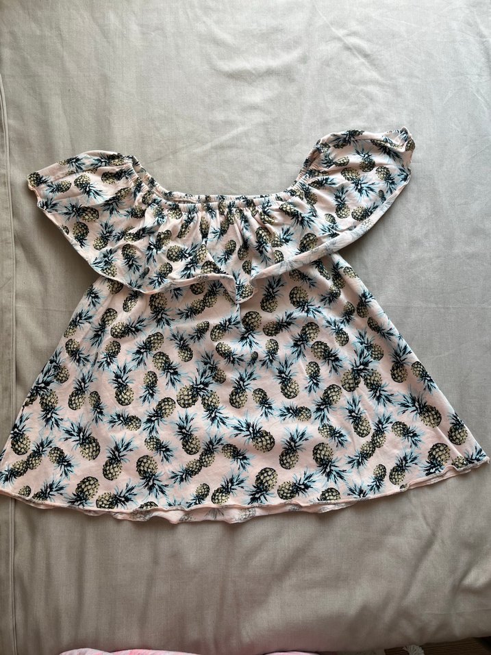 Kız çocuk için , fırfırlı, kolsuz ve bol kesim pembe ananas desenli sentetik kumaş bluz. Bohem tarz için uygundur. M beden yazıyor fakat 12 13 yaş için uygun o yüzden o şekilde giriyorum açıklamaya.