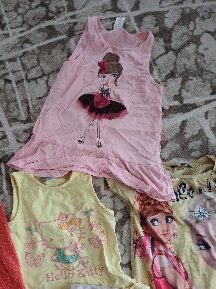Pembe askısız, fitted kesim kız çocuk tişörtü, yumuşak sentetik kumaştan, baskılı desenli ve fırfır detaylıdır. Pop kültür temalıdır, üzerinde Hello Kitty yazısı bulunur. toplu kıyafet