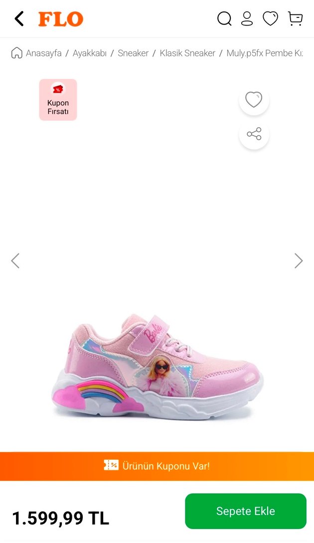 Pembe renkli, bağcıklı ve cırt cırtlı kız çocuk sneakerı. Renkli tie-dye detayları ve kauçuk tabanları ile sokak stiline uygun. Barbie model pembe renk bağcıklı cırtcırtlı 26 numara spor ayakkabı.Flodan alındı çok az giydi cırtcırtları sağlam ayakkabıda yırtık deforme vs yok ama kirlendi yıkanması lazım ve son fotoda yakından çektim görebilirsiniz önünde minicik bir sürtünme var bakarak alınız lütfen, uyguna yüklüyorum marka temsilidir