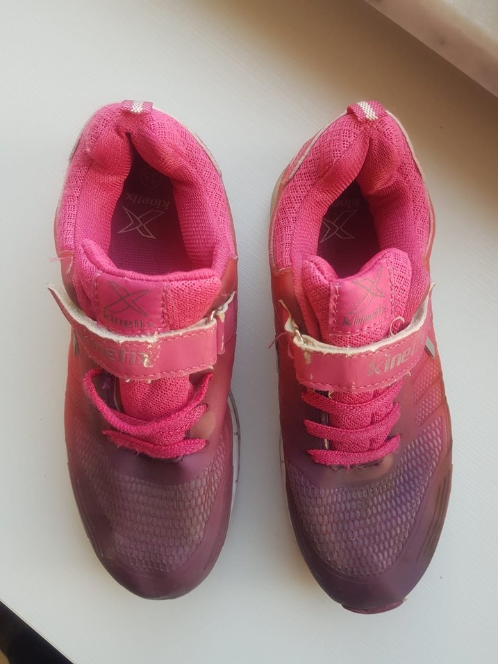 Pembe tonlarda renkli tie-dye desenli, kauçuk tabanlı ve kolay kullanımlı cırt cırtlı kız çocuk spor ayakkabısı. Sokak stili için uygundur. Ürünün üst çırtta azcık aşınma var başka bir sorunu yok