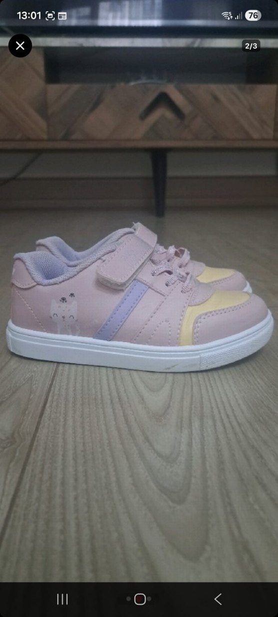 Kız çocukları için pastel pembe tie-dye desenli, kauçuk tabanlı ve cırt cırtlı spor ayakkabı27 numara az kullanılmış