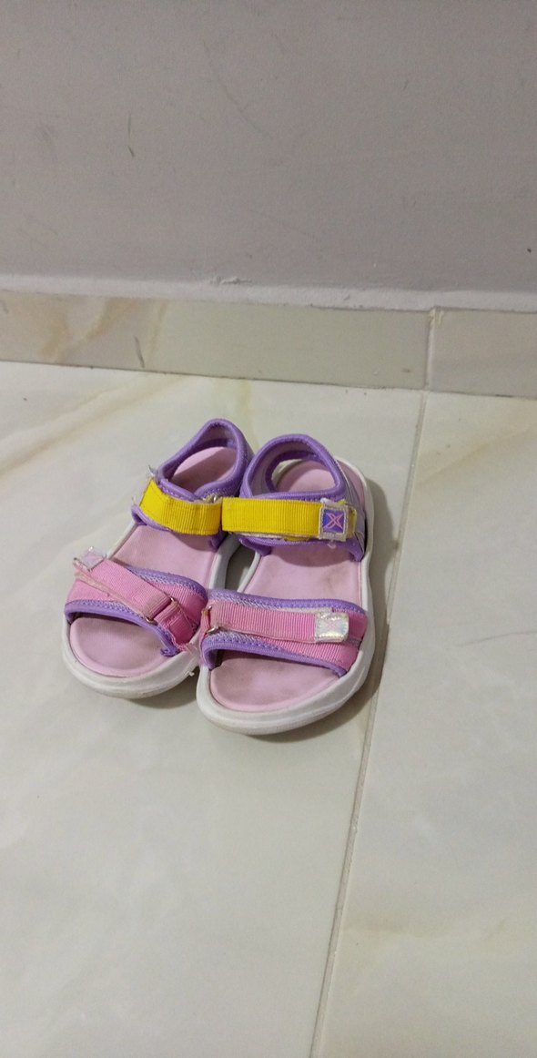 Kız çocukları için pembe kauçuk, bağcıklı ve ayarlanabilir cırt cırtlı, bağcıklı desenli, rahat sokak stili sandaletler. sadece terliksiz bir iki kere giydi diye kararmış sağlam ve temizdir sıfır gibi