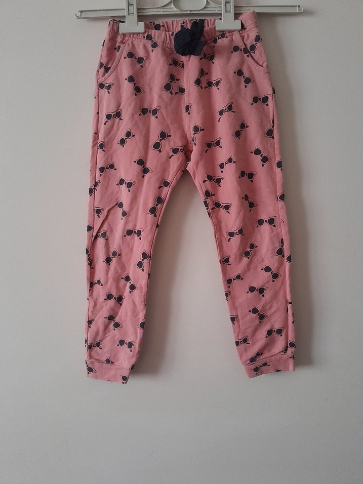 Pembe, bol kesim kız çocuk esofman, elastik bel bandı ve siyah güneş gözlüğü desenleriyle rahat bir kullanım sunar. Yumuşak sentetik kumaştan üretilmiştir. ️