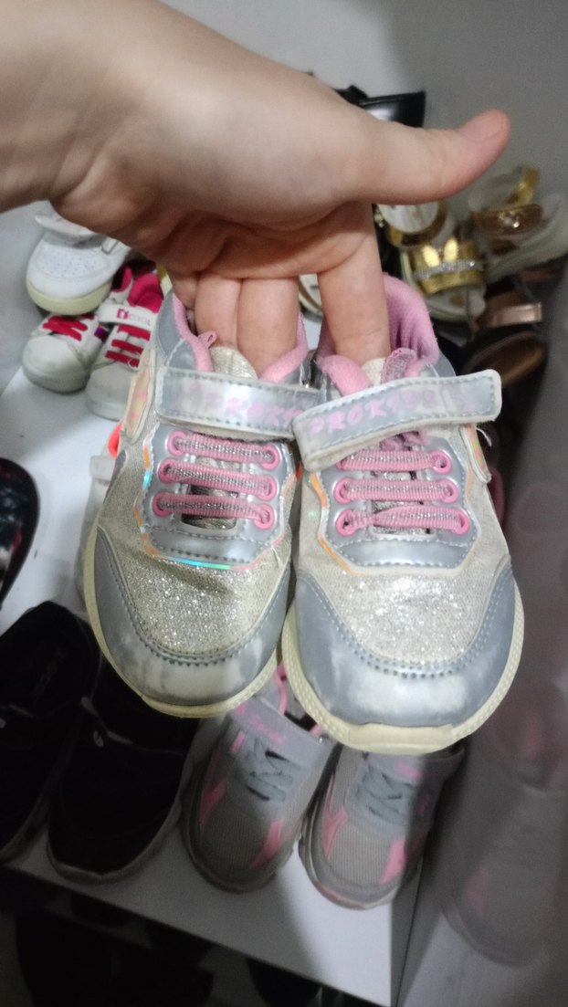 Açık pembe bağcıklı ve cırt cırtlı kız çocuk spor ayakkabısı, lastik tabanlı ve tie-dye desenli.