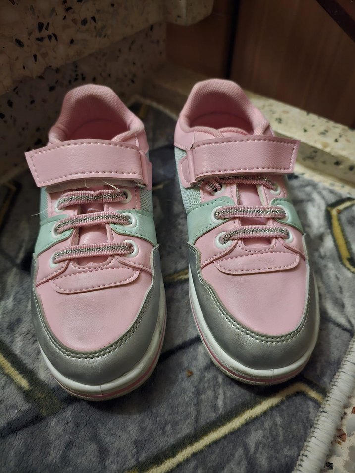 Lastik malzemeden yapılmış, bağcıklı ve pastel pembe tonlarında bağcıklı kız çocuk spor ayakkabısı, streetwear tarzında.