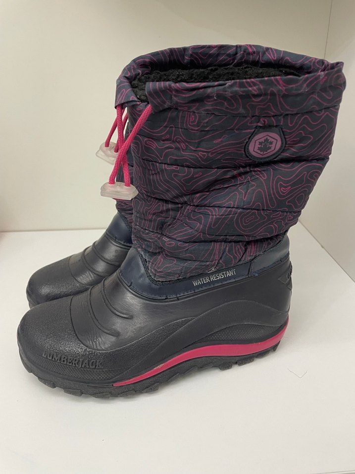 Koyu pembe bağcıklı, desenli ve su geçirmez kauçuk kız çocuk botu, sokak tarzı için uygun. Trend belirleyiciler için şık ve dayanıklı.