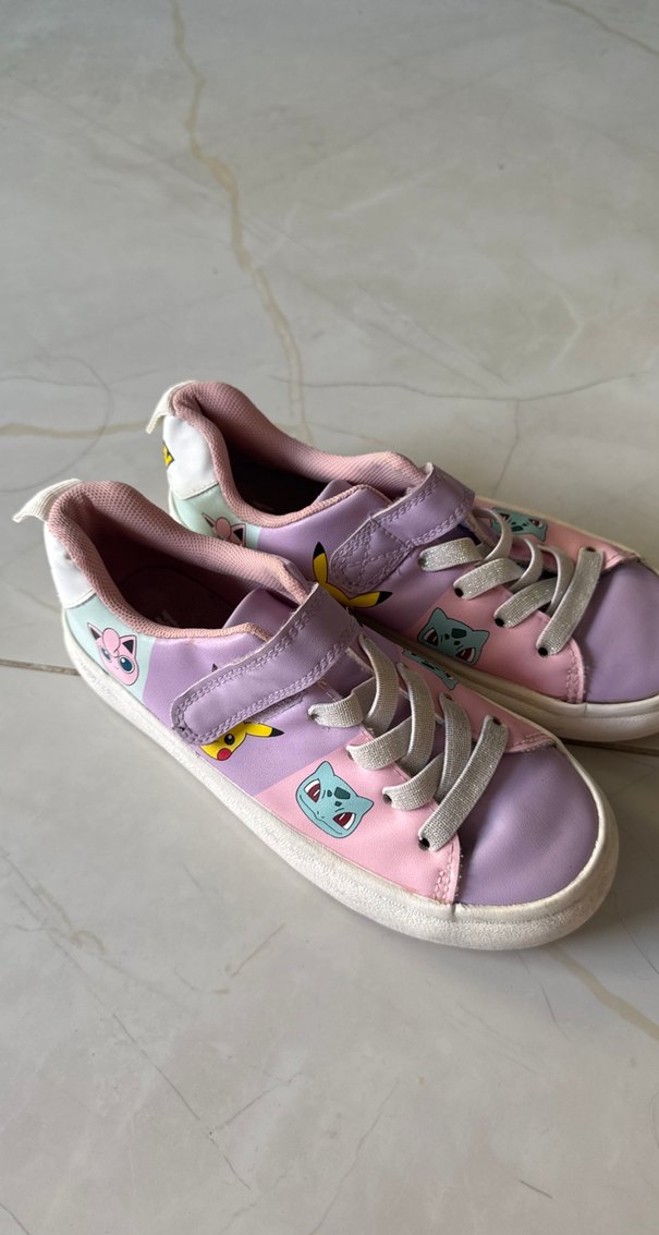 Kız Çocuk Pembe Bağcıklı ve Cırtlı Spor Ayakkabı