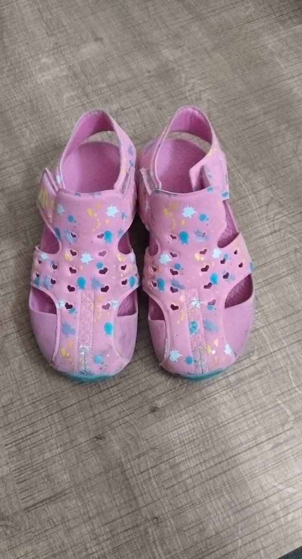Pembe bağcıksız sandalet, pastel tie-dye desenli ve kalp şeklinde kesiklere sahip. Kauçuk malzemeden, kolay giyilen cırt cırtlı bantlı. Sokak stili için uygun.