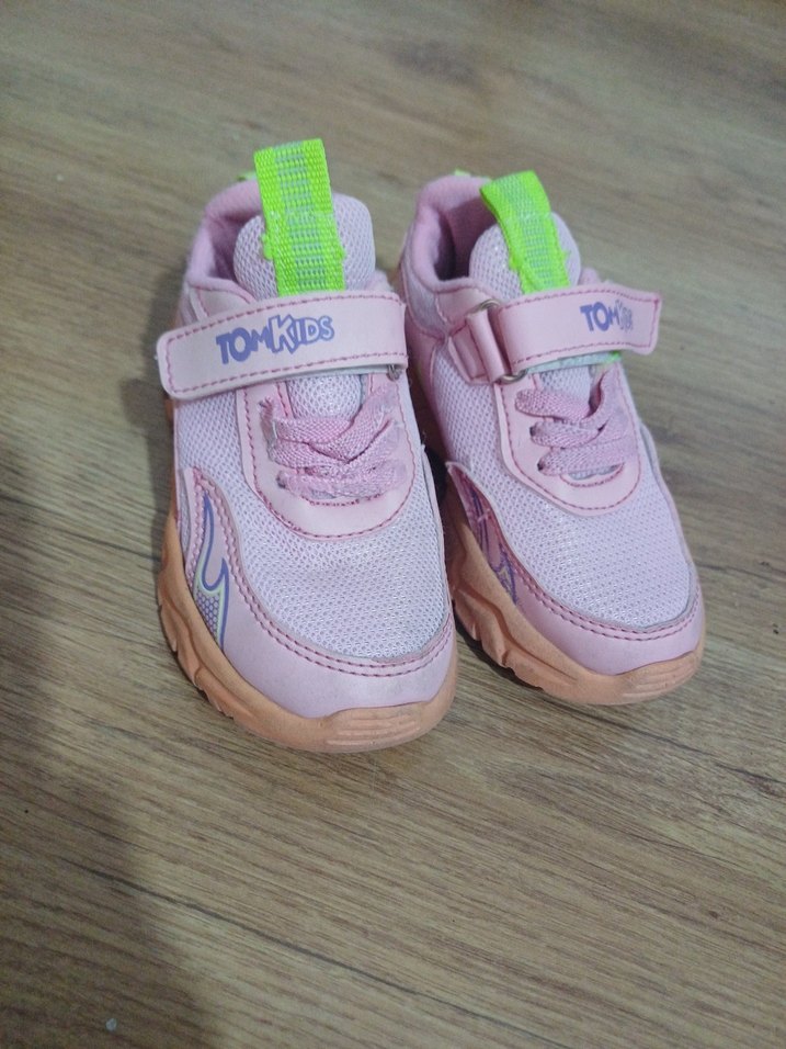 Pembe renkli, bağcıksız ve cırt cırtlı kız çocuk spor ayakkabısı. Renkli tie-dye deseni ve kauçuk tabanı bulunur. TOMKIDS markalıdır.