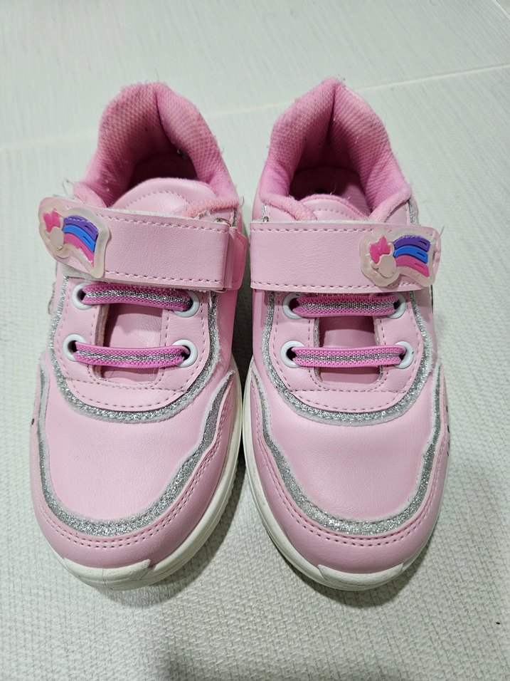Pembe renkli, bağcıksız ve cırt cırtlı kız çocuk spor ayakkabısı. Renkli minnie mouse desenli ve kauçuk tabanlıdır. Trend sokak stili için uygundur. Kalıbı küçük olabilir kızım 28 numara giymesine rağmen giyip çıkarmakta zorlandığı için satıyorum.