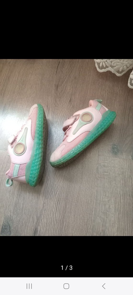 Pembe pastel renkli, lastik tabanlı kız çocuk spor ayakkabısı, kolay kullanım için cırt cırtlı, bağcıksız ve batik desenlidir.
