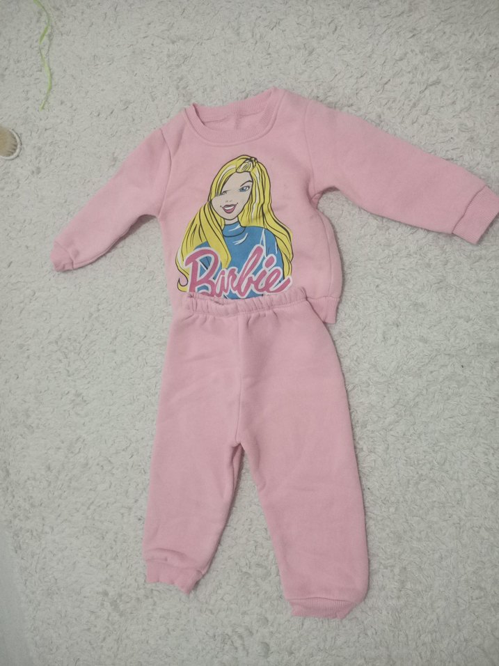 Pembe renkli, uzun kollu, yuvarlak yaka ve bol kesim kız çocuk eşofman takımı. Barbie baskılı, örgü detaylı, yumuşak ve sıcak kumaştan yapılmıştır.