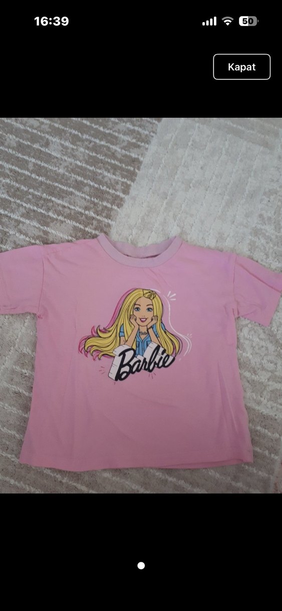 Pembe renkli, kısa kollu ve yuvarlak yakalı kız çocuk tişörtü. Önünde Barbie baskısı ve fırfır detayları bulunan rahat kesim, trend sokak stiline uygun.