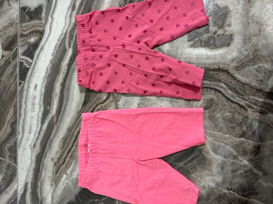Kız çocukları için elastik bele sahip, yumuşak ve sıcak kumaştan yapılmış pembe basic taytlar. Birinde yıldız desen, diğerinde sade tasarım bulunur.