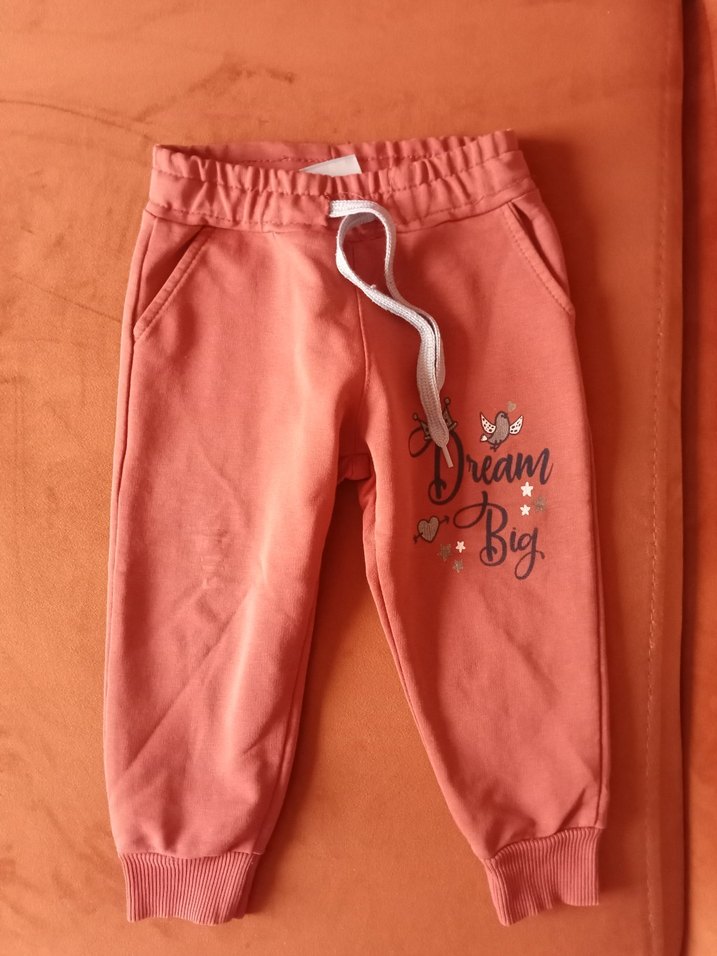 Pembe renkli, bol kesim ve baskılı kız çocuk eşofmanı. Yumuşak ve sıcak kumaştan, kemerli bel ve uzun kollu tasarımda.