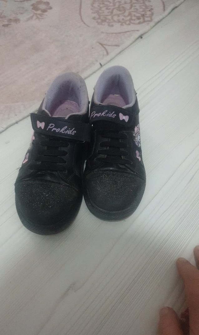 Koyu pembe baskılı, kauçuk tabanlı kız çocuk spor ayakkabısı, kolay kullanım için cırt cırtlı bantlı. Marka: WProkids.