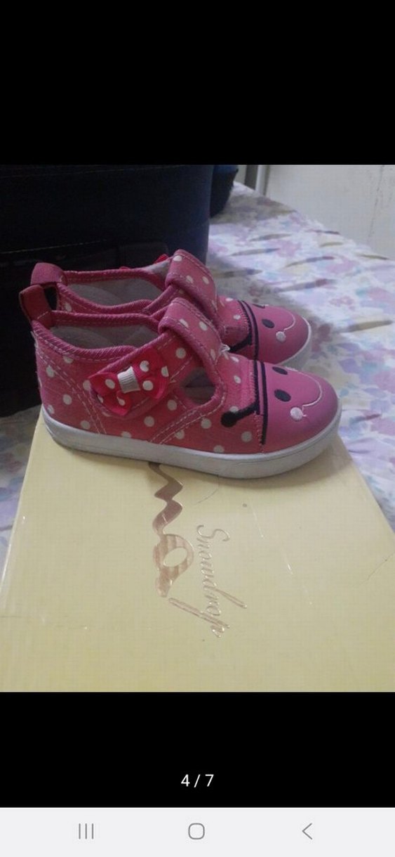 Pembe renkli, renkli baskılı desenli, cırtcırtlı kapamalı kız çocuk spor ayakkabısı, kauçuk malzemeden üretilmiştir.