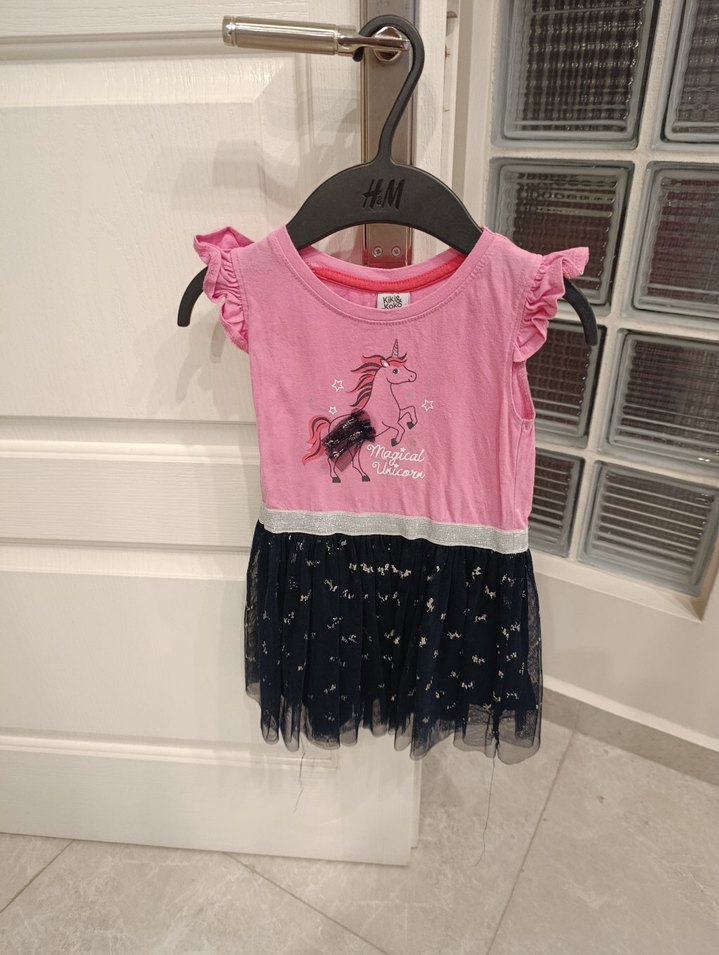 Kız çocuk pembe baskılı elbise, kısa kollu ve fırfırlı detaylıdır. Sentetik kumaştan, straplez yaka ve renkli desenlidir. Trend sokak stili için uygundur.