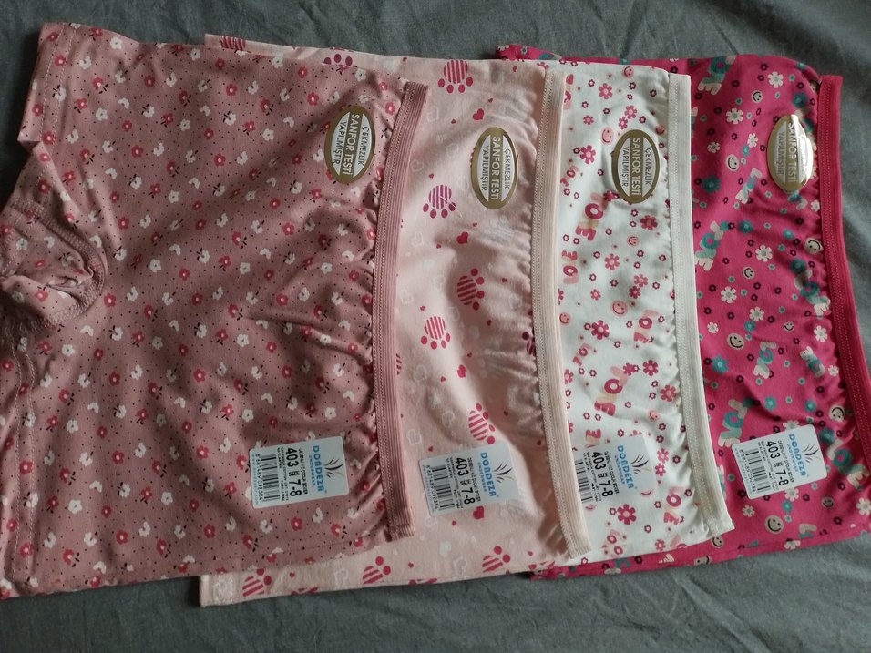 Çiçek ve pati desenli, pastel pembe tonlarda çocuk iç çamaşırı rahat kullanım sağlar. adet fiyatıdır. Yeni ilan açtirarak alınız.