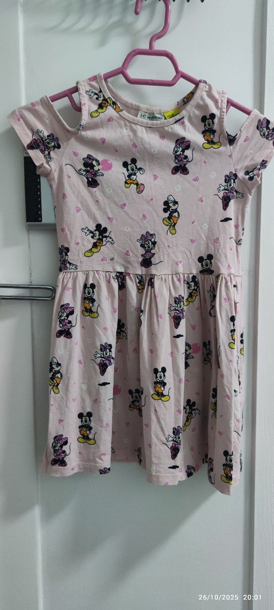 Pembe renkli, baskılı desenli, kısa kollu ve bol kesim kız çocuk elbisesi. Sentetik kumaştan yapılmış, fırfır detaylı, rahat sokak stili için uygundur.