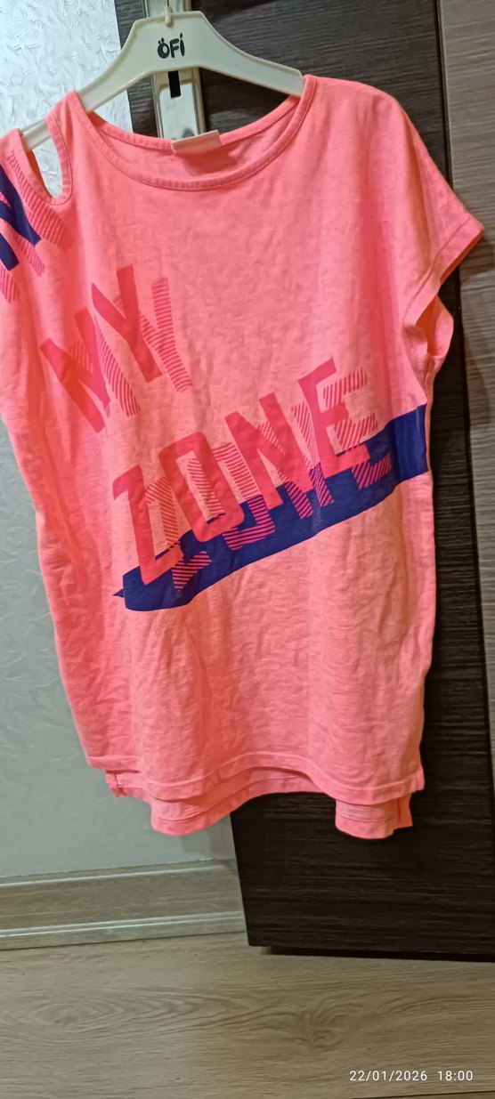 Pembe renkli, kısa kollu ve yuvarlak yakalı kız çocuk tişörtü. Sentetik kumaş ve bol kesim. Renkli baskı detaylarıyla trendy casual tarzı yansıtıyor.