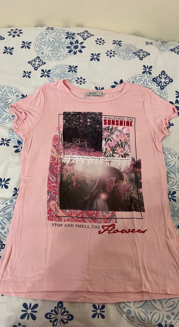 Kız Çocuk Pembe Baskılı Kısa Kollu Tişört