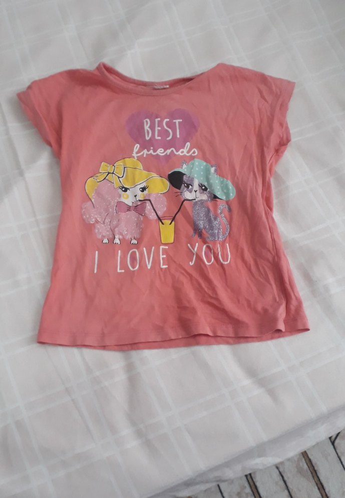 Pamuklu, kısa kollu, yuvarlak yaka, pembe renkli ve bol kesim tişört. Üzerinde "BEST friends I LOVE YOU" yazılı baskı ve iki arkadaş figürü bulunur.