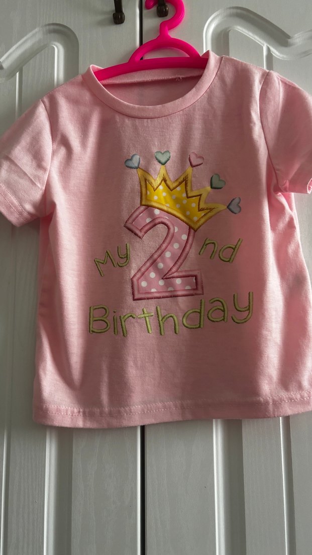 2 yaş Birthday YAZILI Pembe renkli, kısa kollu, yuvarlak yakalı kız çocuk tişörtü. Üzerinde doğum günü baskısı ve fırfır detayı bulunur. Rahat kesim ve yumuşak kumaş.