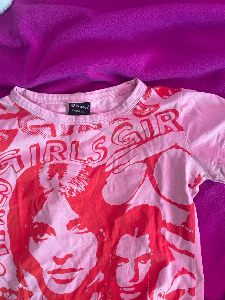 Kız Çocuk Pembe Baskılı Kısa Kollu Tişört