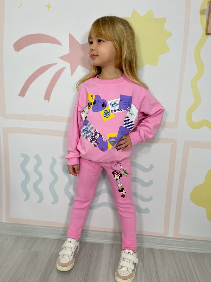 Kız Çocuk Pembe Baskılı Pamuklu Takım
