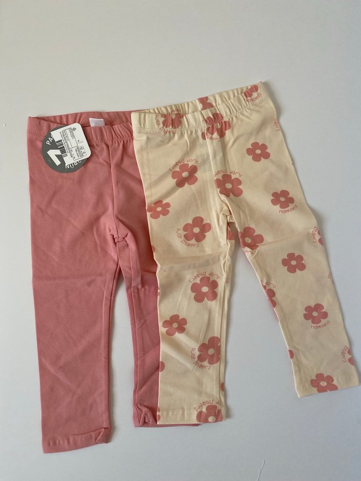 Kız Çocuk Pembe Baskılı Pamuklu Tayt 2'li