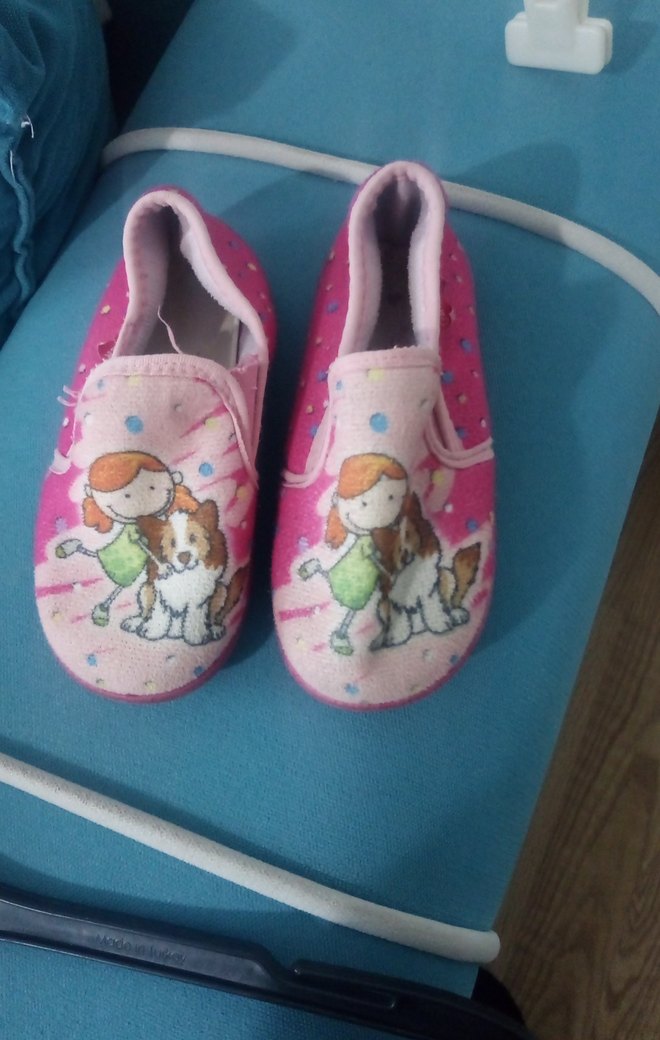 Pembe renkli, kız çocukları için baskılı ve velcro kapamalı, yumuşak ve sıcak dokulu ev terliği.