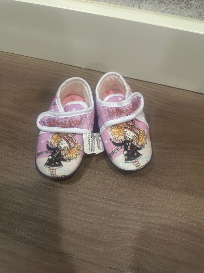 Velcro bantlı, baskılı pembe kız çocuk sıcak terlik. Kauçuk tabanlı ve yumuşak iç yüzeylidir. Pastel renklerde, rahat kullanım sağlar. Hiç kullanılmadı etiketlidir