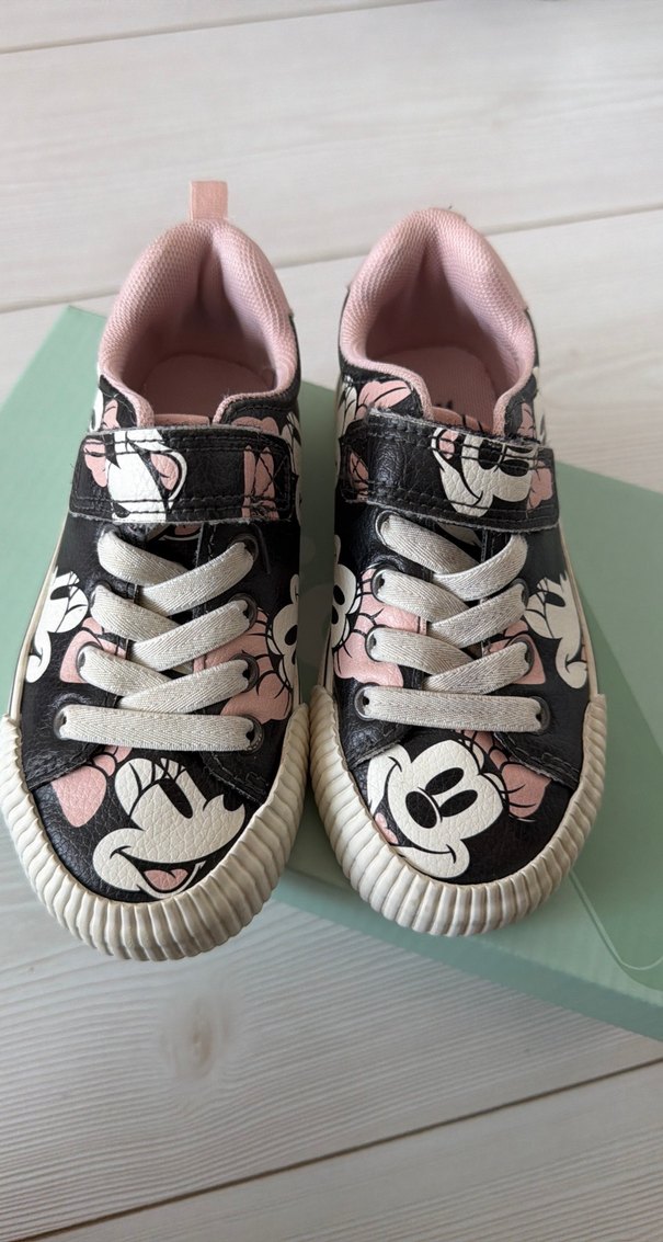 Kız çocukları için pastel pembe baskılı, Velcro bantlı ve kauçuk tabanlı spor ayakkabılar, sokak modasına uygun.