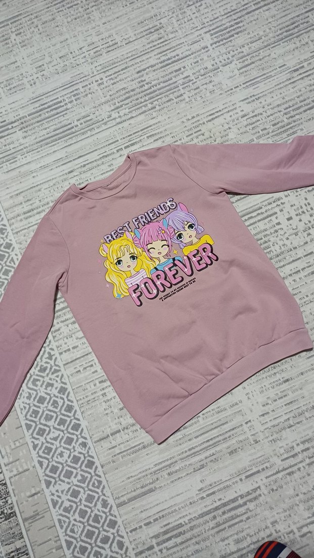 Pembe renkli kız çocuk sweatshirtü, 12 13 yaş az kullanıldı