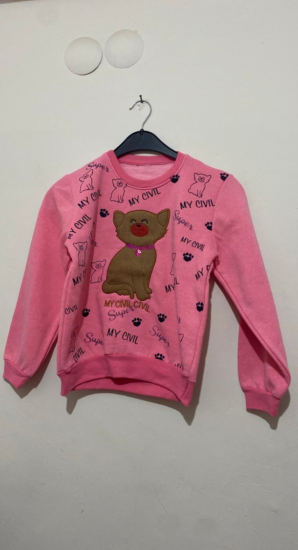 Pembe renkli, uzun kollu, yuvarlak yakalı kız çocuk sweatshirtü. Renkli baskılar ve örme ayı figürü ile rahat kesim, günlük kullanıma uygun. 10-11 yaş 12-13 yaş mevcuttur.