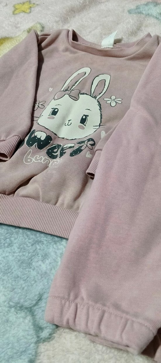 Pembe renkli kız çocuk sweatshirtü, uzun kollu ve yuvarlak yaka. Yumuşak kumaştan, tavşan baskılı detaylıdır.