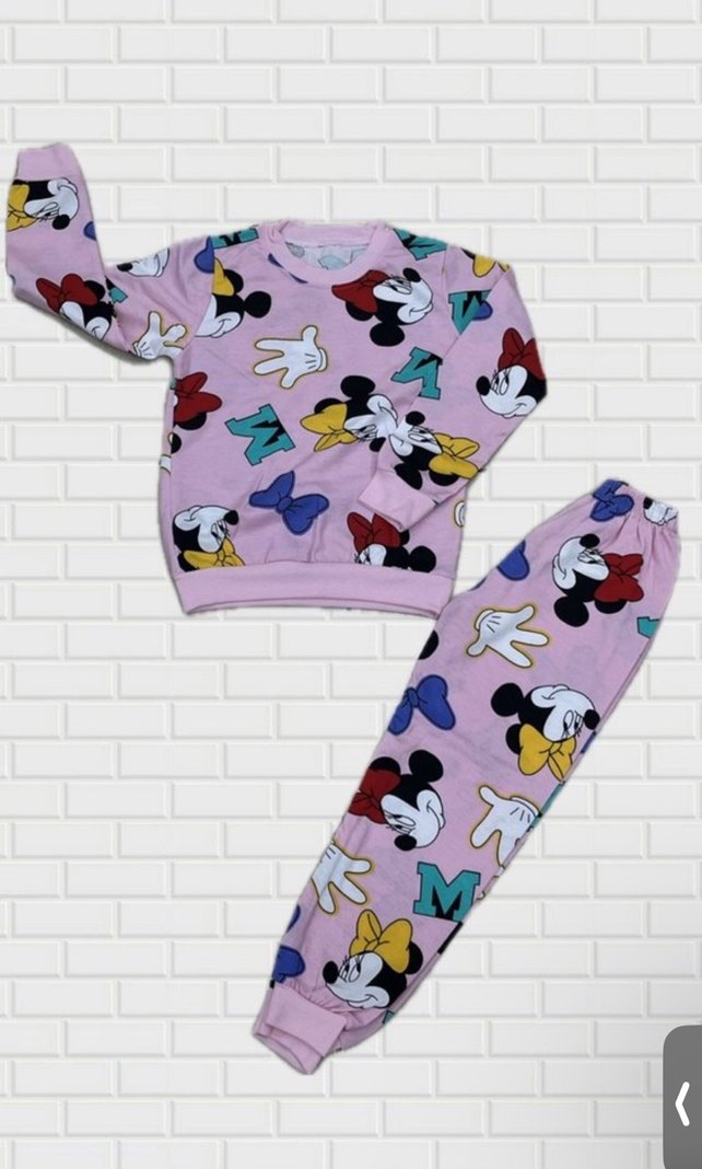 Kız Çocuk Pembe Baskılı Sweatshirt ve Eşofman Takımı