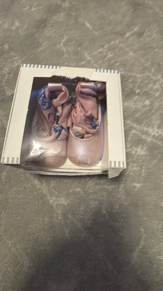 Pembe baskılı kumaş ve tokalı detaylı kız çocuk babeti, kauçuk malzemeden, bohem tarzda. Hiç kullanılmadı kutusunda gönderilecektir