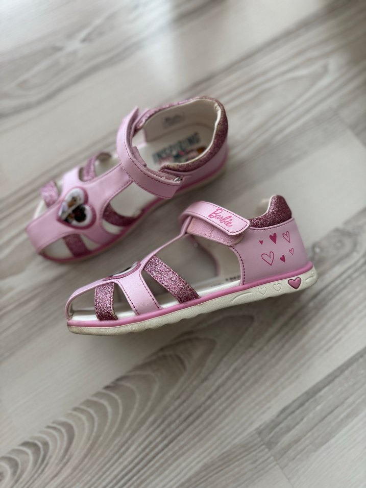 Açık pembe tonlarında, kalpli baskılı ve sim detaylı kız çocuk sandaletleri. Tokalı yapısıyla sağlam kullanım sunar, rahat kauçuk tabana sahiptir. 27 no. 1 defa giyildi.Marka temsilidir çünkü yurt dısından alındı.