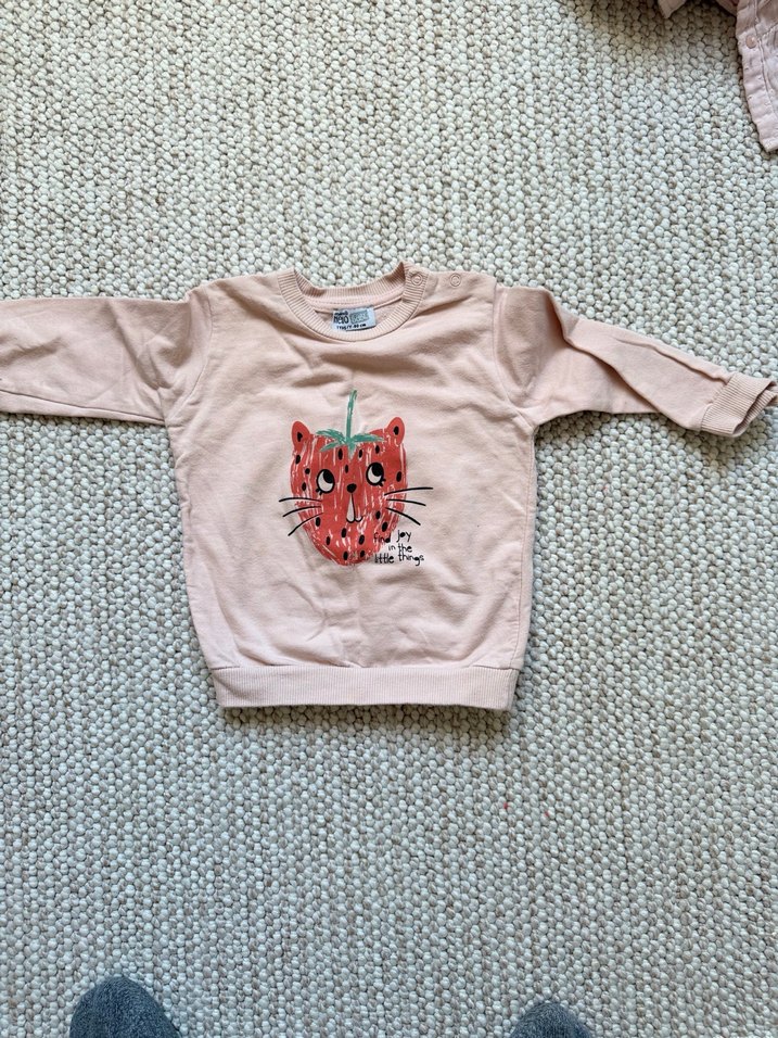 Pembe renkli, örgü kumaştan yapılmış kız çocuk sweatshirtü. Uzun kollu ve yuvarlak yaka, önünde baskılı sevimli desen bulunur. Rahat kesim ve günlük sokak stili için uygundur.