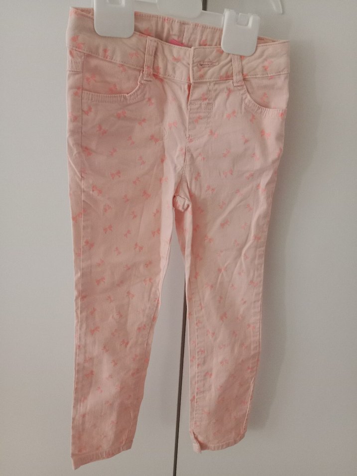 Kız çocukları için pastel pembe batik desenli, regular fit ve düğmeli, sentetik kumaştan sokak stili pantolon. hiç problemi yoktur