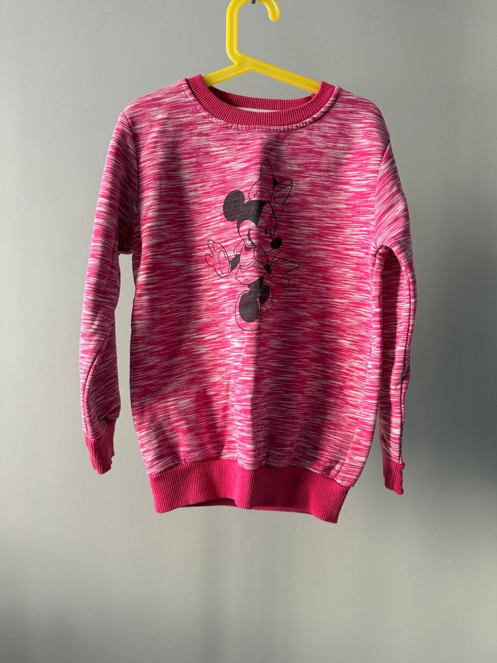 Kız çocukları için uzun kollu, yuvarlak yaka, renkli pembe batik desenli, örme ve yumuşak dokulu rahat sweatshirt.