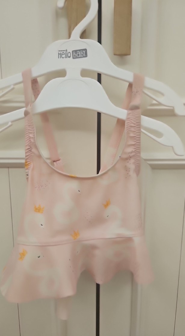 1 kere giyildi, tertemiz. Kalıbı küçük, 1 yaş veya zayıf 2 yaş için uygun. Pembe, flamingo baskılı, arkası çapraz bikini takımı.