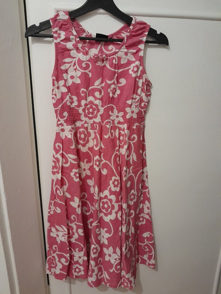 Kız Çocuk Pembe Çiçekli Bohem Elbise 11-12 yaş