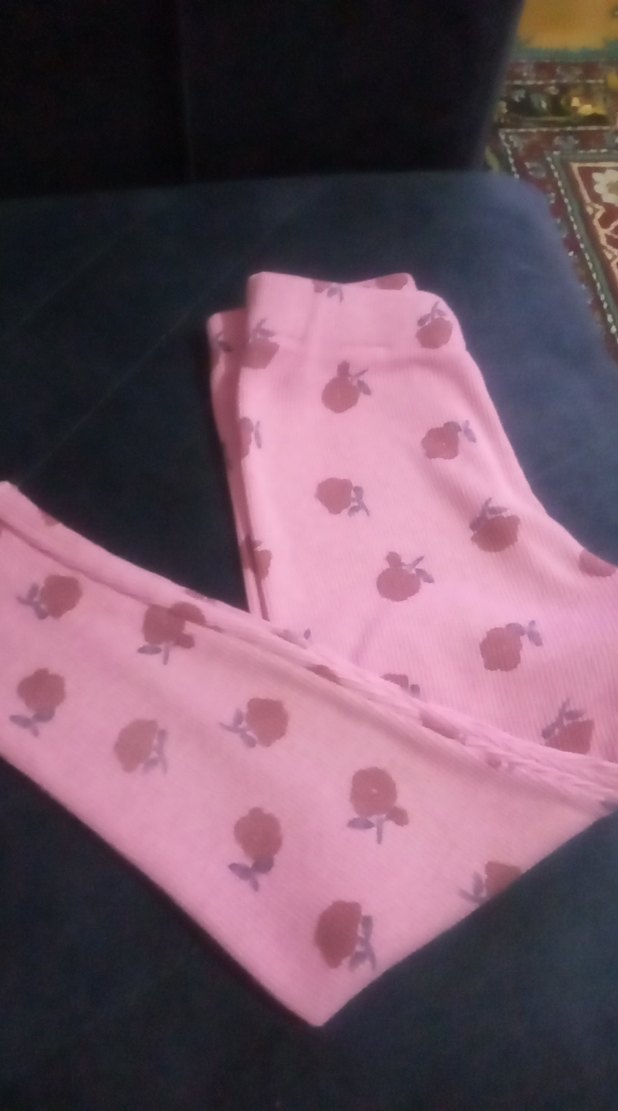 Pembe renkli, çiçek desenli, triko dokulu ve yumuşak sıcak kumaşlı kız çocuk taytı, rahat sokak stilleri için uygundur.